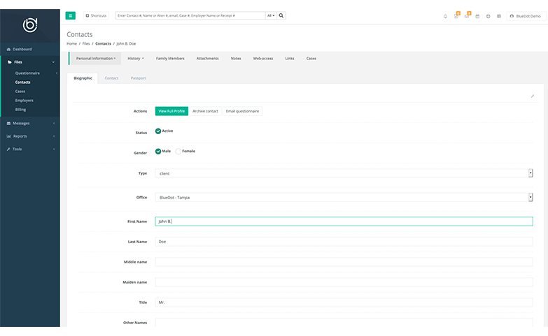 Timesheets: Keep track of the time you and your team spend on a case, and run reports by user easily. Speech to text: To add notes or reminders simply speak using your microphone and BlueDot will convert it to plain text automatically. Assembly: Select attached documents, forms, cover letters from a case and download all of them with one click.